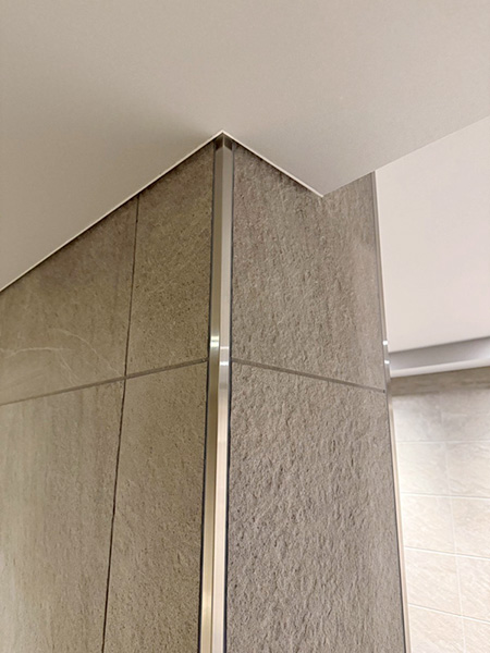 南、北、あわせて2カ所、鉄骨階段に下地を入れ、立ち上がった下地にパネルをノンシール工法で施工しました。 逃げのきかないノンシール工法で加工・施工できたのは、弊社の技術の向上になり、自信になりました。